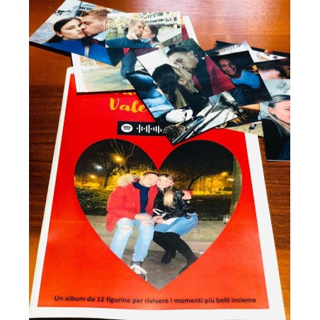 L'album è di 10 pagine ed include 13 figurine personalizzate con le vostre foto di diversa grandezza.